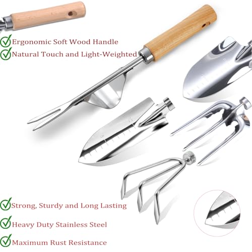 Garden Tool Set 11-Piece Heavy Duty Gardening Hand Tools - Rust-Resistant Stainless Steel with Durable Stylish Garden Tools Organizer Tote Bag | Ideal Gardening Gift for Women & Garden Enthusiasts