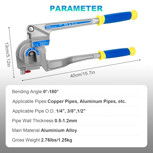 3 in 1 Manual Level Tube Bender, Pipe Tube Bender, 1/4", 3/8", 1/2" OD180¡Æ Copper Aluminum Pipes Bending Tools for HVAC Air Conditioning