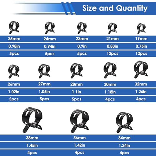 smseace 75Pcs Spring Band Hose Clamp 19 21 23 24 25 26 27 28 30 32 34 36 38mm Constant Tension Hose Clamp With Plier used for Fuel Line£¬Vacuum Hose£¬Air Hose Spring Hose Clamp Kit