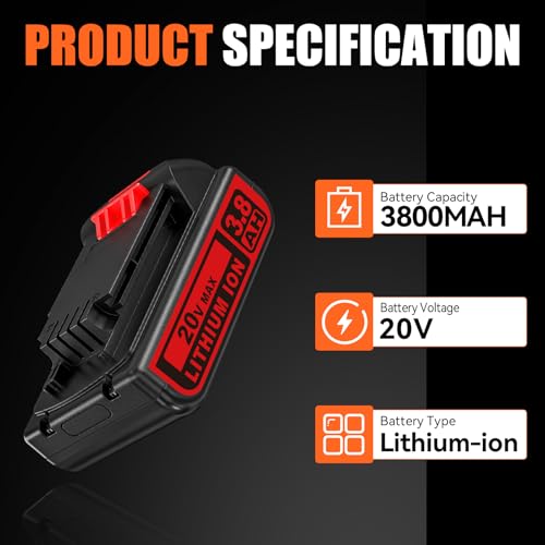 2Pack 3.8Ah 20V Replacement for Black and Decker 20V Battery Li-ion Battery LBXR20 Compatible with Black and Decker Battery 20V for Power Tool