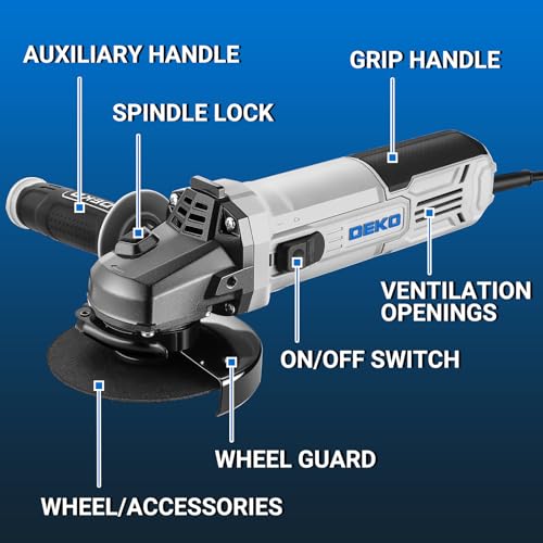 Angle Grinder Electric Power Tool: DEKOPRO 4-1/2 Inch 7.5-Amp Angle Grinder Power Corded Hand Grinders Tools with Grinding and Cutting Wheel, Disc for Metal, Wood