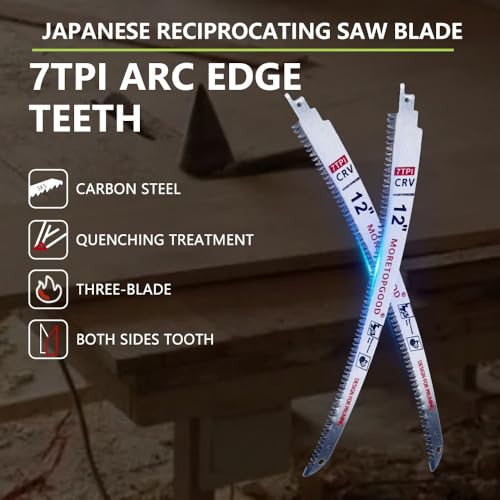 12¡± Arc Edge Reciprocating Saw Blade, 7TPI Japanese Teeth with Curved Edge Wood Pruning Saw Blades for Tree Trimming, Wood Cutting (3 Pack)