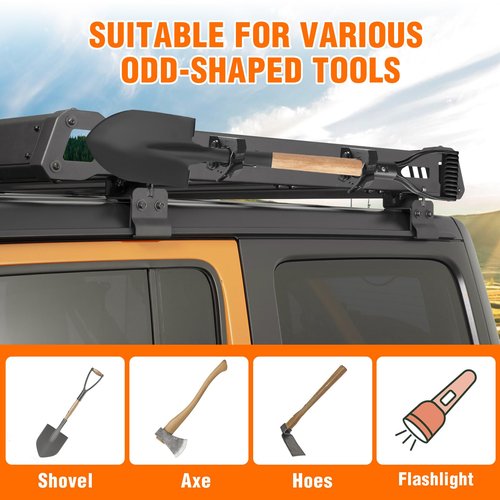 LUBELE Molle Panel Shovel Mount for Truck Bed, Quick Release Rubber Clamp Kit for 29-36mm Diameter Shovel Axe Flashlight Tool Holder for Off-Road Vehicles Trucks UTV ATV Roof Rack Organization 1 Pair