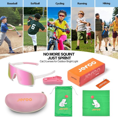 Jefoo Kids Baseball Sunglasses Polarized Sports UV400 Protection Lightweight Cycling Glasses with Strap for Boys Girls 5-10
