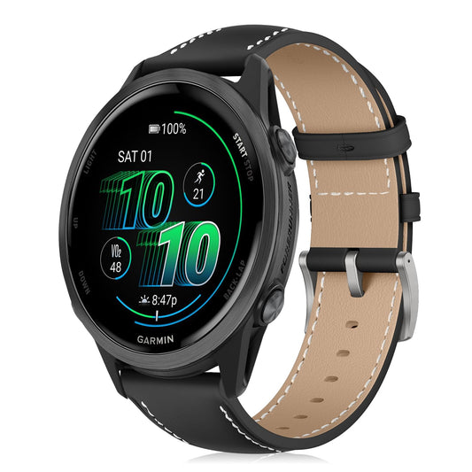 Slim Leather Watch Bands Compatible with Garmin Forerunner 570 42mm/Vivoactive 6/5/3/Venu Sq 2/Venu Sq/Forerunner 165,20mm Wristband,Replacement Stylish Slim Wristband Strap for Women Men Black