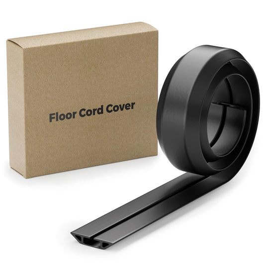 Yecaye 4ft Floor Cord Cover, Cord Covers for Wires on Floor, Floor Cable Mangament, Cable Protector for Organizing and Protecting Wires on Floor, Cord Hider Cable Cavity W0.55in H0.27in Black