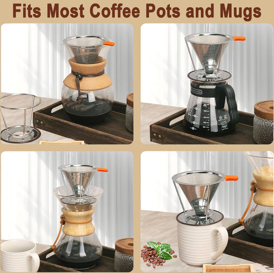 Pour Over Coffee Dripper, Stainless Steel Filter, Easy to Clean Paperless Pour Over Coffee Maker,Reusable Filter, Cone Dripper with Removable Cup Stand