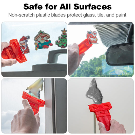 Dual-Width Plastic Razor Blade Scraper Tool Non Scratch - 2-Pack With 100 Blades, Single Or Double Wide Head, Removes Stickers, Labels, Decals, Adhesive & Paint On Glass, Cooktops, Car Windows & Tiles