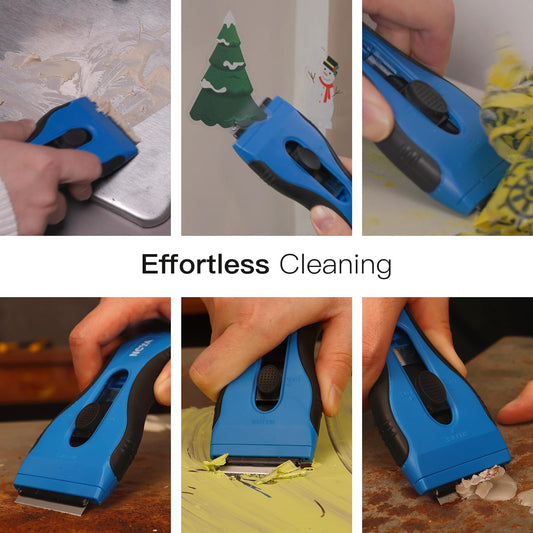 Nova Auto-load Razor Blade Scraper With 16 Extra Standard Razor Blades, Ergonomic Handle, Blades Storage, Cleaning Plastic Scraper Tool for Glass Stove Top, Paint, Window, Oven Door and Cooktop