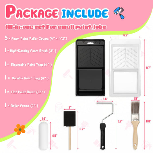 DIYSELF Paint Roller Kit - Foam Paint Roller 4 inch, Small Roller Paint Brush, Mini Rollers for Painting, Walls, Cabinets, Doors, House Painting Supplies, Professional Paint Roller Tray Set (10 Pack)