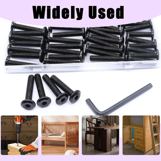 Taiss 25pcs 1/4-20 x 1-1/4" Flat Head Socket Head Screw,Furniture Bolts,Furniture Screws 304 Stainless Steel,1/4 Bolts Black Zinc Plated Fully Threaded,Countersunk Connector Screws with Hex Spanner