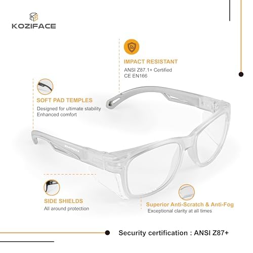 KOZIFACE E52C Anti-Fog Safety Glasses ? Z87+ Certified Protective Eyewear with Side Shields, Scratch-Resistant Clear Lens, Comfortable for Men & Women, Indoor & Outdoor Use