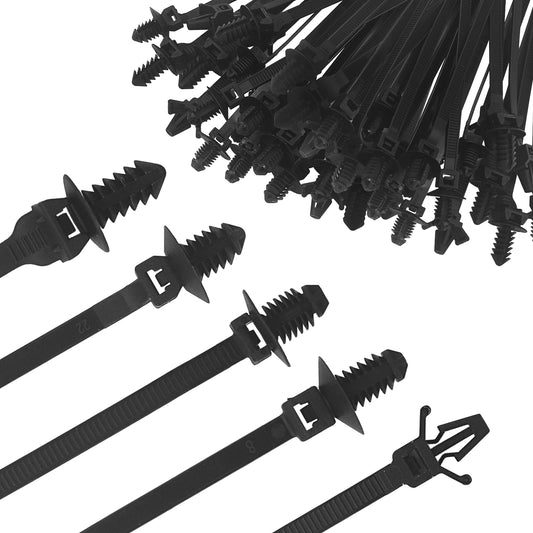 LOUZAGO 50 Pcs Push Mount Cable Ties, Nylon Push Mount Zip Ties Self Locking Wire Harness Clips, Heavy Duty Automotive Wire Clips Snap in Cable Zip Ties Fastener Car Mount Wire Ties (5-Types)