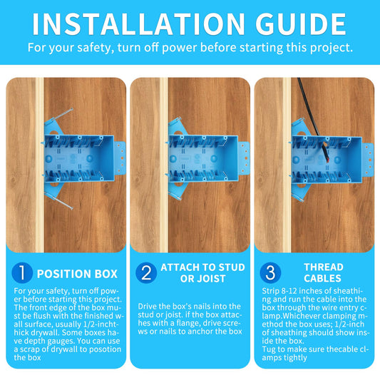 XIUTE Blue 3-Gang PVC New Work Switch/Outlet Wall Electrical Box, Interior Space of 44 Cubic Inches,for The Electrical Installation of Buildings,ETL