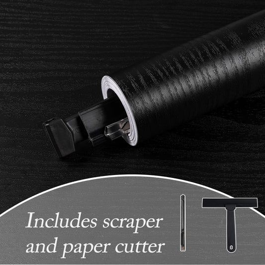 Wood Contact Paper With Tools, Black Peel and Stick Wallpaper Thickened No Tearing Vinyl Wrap, Self Adhesive Faux Wood Grain Wallpaper Cover Cabinets Countertop Wall Furniture Decoration 17.7" X 78.7"