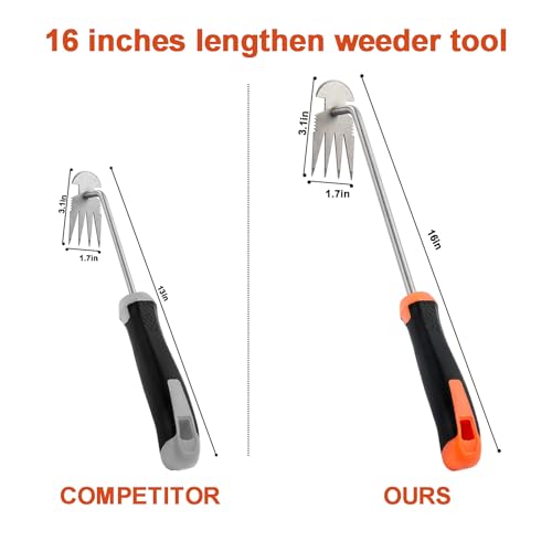 Weed Puller Tool, Rubber Handle Garden Manual Weeder Tool, Portable Stainless Steel Weeding Tools, For Hand Weeder Puller for Vegetable Gardening Backyard Farm Planting & Uprooting Weeding Tool