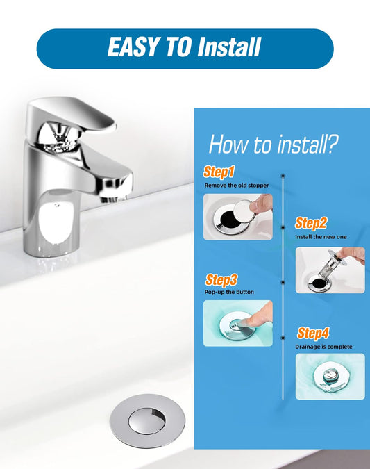 Bathroom Sink Drain Strainer,Pop-up Sink Drain Strainer for U.S. Standard Universal,Hair Catcher Sink Stopper with Removable Stainless Steel Filter Basket