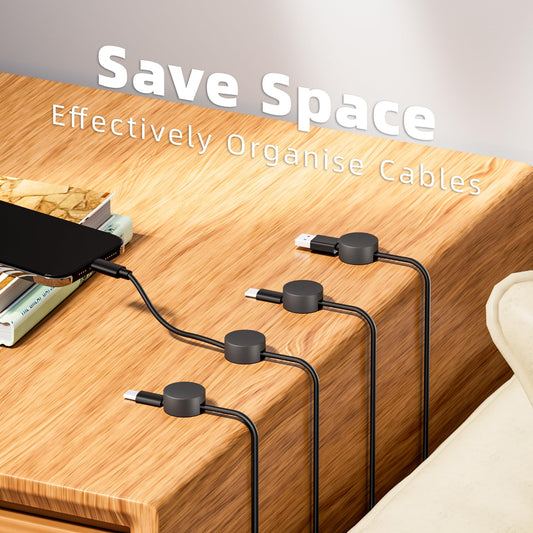 Viaky 8-Pack Magnetic Cable Holder Black, Self Adhesive Silicone Magnet Cable Straps, Strong Cord Holder for Phone Charge, Wire Management for Nightstand, Wall, Office, Home, Car, Desk