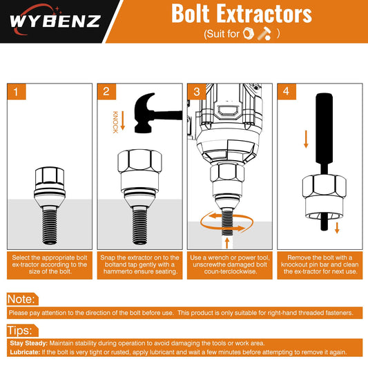 15 PCS Bolt Extractor Set, 3/8" Drive Impact Bolt & Lug Nut Remover Socket Tool Kit, Stripped Bolt Extractor Socket Set For Broken,Damaged, Frozen, Studs, Rusted, Rounded-Off Bolts, Nuts & Screws