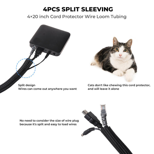 AORUICN 98 PCS Cable Management Kit, 4 Cable Sleeve, 8 Magnetic Cable Holder, 10 Self Adhesive Cord Organizer, 45 Cable Clips, 10+1 Roll Reusable Cable Ties with 20 Buckles for Computer TV Under Desk