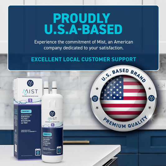 Mist EDR1RXD1 Replacement for Everydrop® Filter 1 – Whirlpool® WHR1RXD1 W10295370A, Kenmore® 46-9081 Refrigerator Water Filter – NSF 42 & 372 Certified