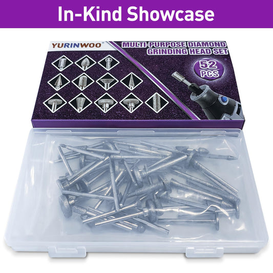 Stone Carving Set Diamond Grinding Bit Compatible with Dremel, 52Pcs Polishing Kit Diamond Bits 1/8" (3mm) Shank Accessories for Stone Glass Ceramics Carving, Polishing, Grinding