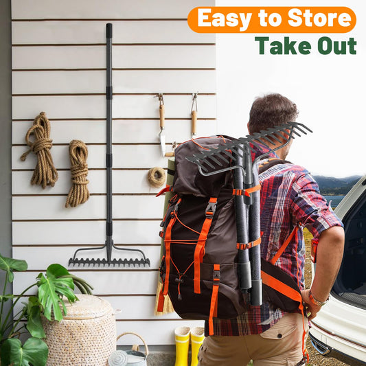 Rake, 17 Tines with 49 Inch Handle, 17 Inch Wide Heavy Duty Garden Thatch Leaf Rake for Raking Leaf Loosening Soil Gathering Mulch Leveling Rocks, Rustproof Metal Bow Rakes for Leaves Grass