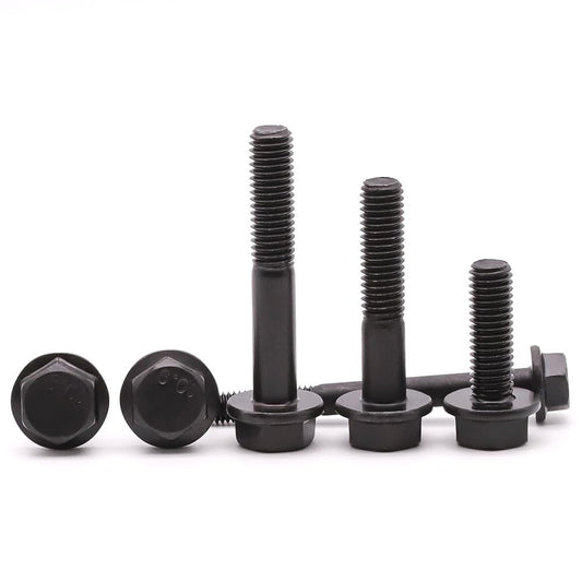 M12-1.75 x 80mm (4 Pack) Flanged Hex Head Bolts, Hexagon Flange Screws, Black Oxide Finish, 10.9 Grade Alloy Steel, Motocycle Car Bolts Replacements, Partial Thread