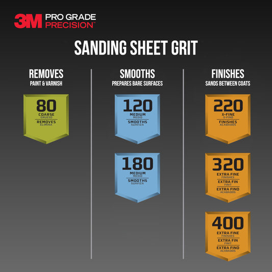 3M Pro Grade Precision Sanding Sheets with No-Slip Grip, 3-2/3 x 9 in, Assorted Grits, 6-Pack (SHTRASST-PGP6T)