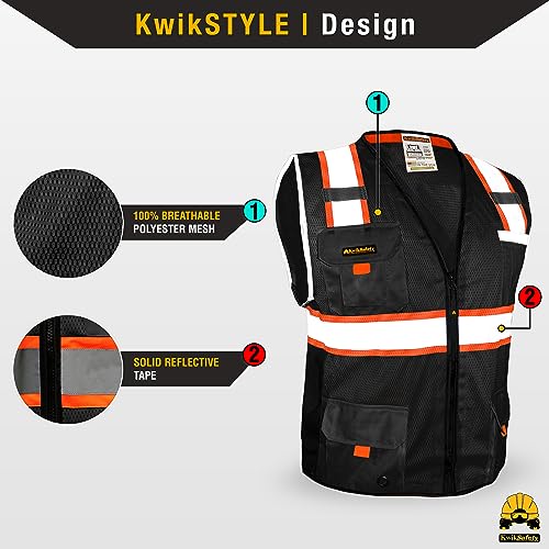 KwikSafety - Charlotte, NC - UNDERBOSS Safety Vest [11 POCKETS] Premium ANSI Class Unrated High Visibility Vest Construction Surveyor Reflective Vest Industrial Work Safety Vest for Men/Black 2XL