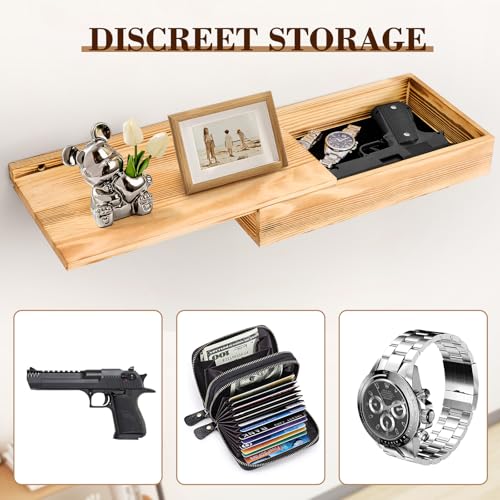 Hidden Gun Storage Shelf-14.4" x 7.7" x 2.75" Rustic Concealment Shelf Concealment Compartment Furniture Hidden Gun Safe Wall Decor for Home Security, Oak Color