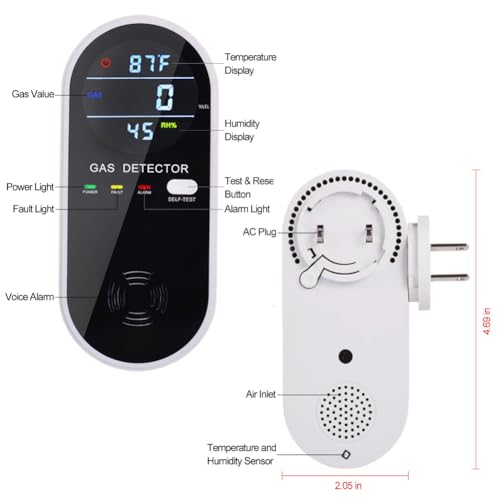 3-in-1 Combustible Gas Detector with Temperature and Humidity Display, Plug-in Portable Combustible Gas Leak Alarm£¬Natural Propane Gas Detector for Kitchen£¬Living Room£¬Bedroom.