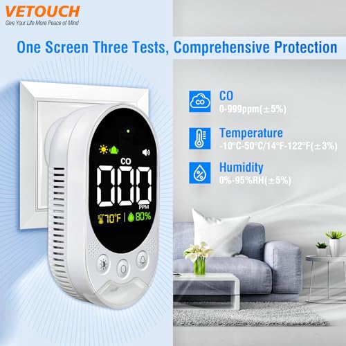 Portable Carbon Monoxide Detector Plug,Upgraded Version Configure Emergency Lighting CO Alarm,Accurate Detection of CO Concentration Graded Warning, While Monitoring Temperature Humidity