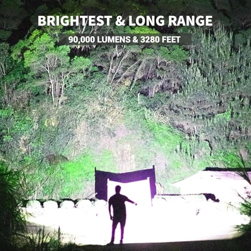 Rechargeable Flashlights High Lumens, 90,000 Lumen Super Bright Led Flashlight with USB Cable, 5 Modes Powerful Flashlight Waterproof Flash Light for Home Camping - 2 Pack
