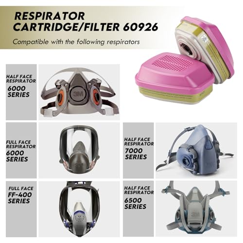 Respirator Cartridge/Filter 60926, Against Organic Vapors, Acid Gases, Ammonia Methylamine, Formaldehyde and Particulates, Compatible with 6000 7000 FF-400 Series Respirator, 3 Pair