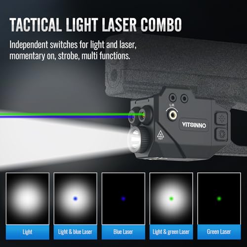 500lm Pistol Light and Blue Green Laser Combo,Slidable Weapon Light and Laser Beam for Guns with Picatinny