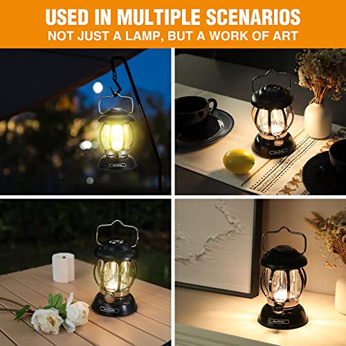 EverBrite Camping Lantern Rechargeable, Retro Metal Camping Light, 4400mAh Battery Powered Hanging Vintage Camping Lamp, 3 Light Modes, Outdoor Tent Light, Emergency Lantern for Power Outage - Black