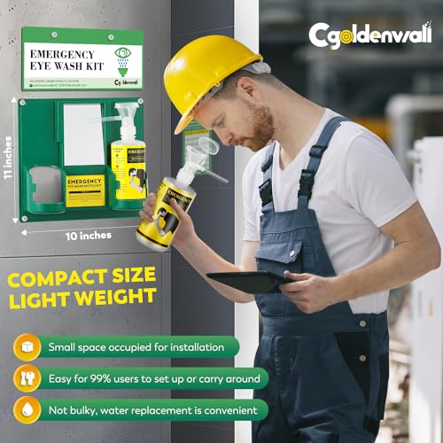 CGOLDENWALL Upgraded Portable Eye Wash Station OSHA Approved Emergency Eye Wash Kit, Sturdier Bottle Holder Larger Mirror, 2 * 16.9oz Empty Eyewash Bottles, NO Solution (White Cap)