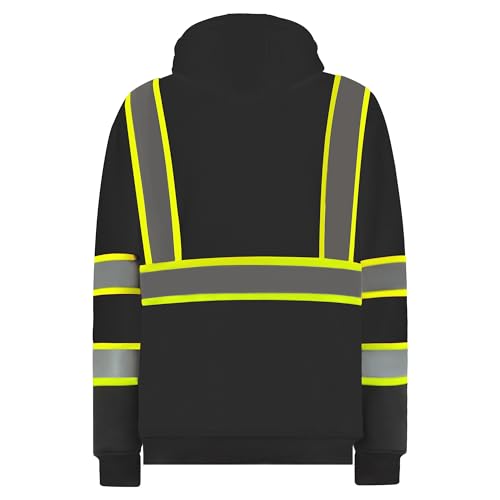 High Visibility safety hoodie ANSI Class 3 Fleece Lining Sweatshirts with Pockets, Hi-vis Pullover Hoodies for Men