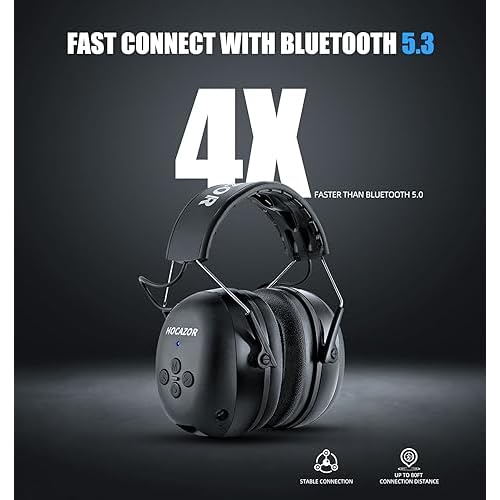 HZ07 Upgrade Bluetooth 5.3 Hearing Protection - NRR 25dB Noise Cancelling Earmuffs 40 Hours+ Playing Time with 1500mAh Rechargeable Battery for Mowing, Workshops, Black