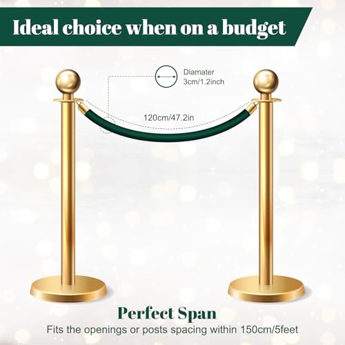 Fumete 6 Pieces Velvet Stanchion Rope Bulk 4 Feet Party Crowd Control Barrier Safety Velvet Rope with Gold Hook for Movie Theater Opening, Hotel, Carpet, Not Include Stanchion Post (Dark Green)