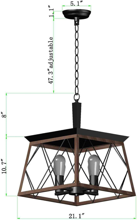Farmhouse Vintage Pendant Light Fixture - Industrial Wrought Iron Chandelier, E26 UL Listed