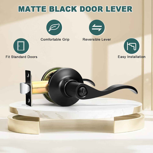 Black Privacy Door Levers - 6 Pack Keyless Modern Wave Handles for Bedrooms