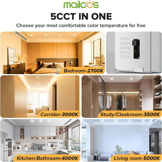 Ultra-Thin 12 Pack 6-Inch Dimmable LED Recessed Lighting - 5CCT Selectable, 1050LM, ETL