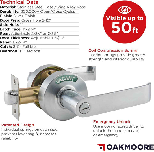 Privacy Door Handle Lock for Bathroom - Black Vacant Occupied Restroom Handle