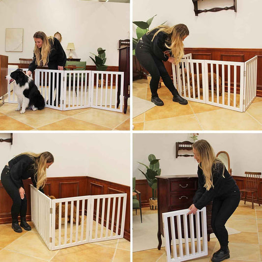 Extra Wide Freestanding Indoor Dog Gate - Foldable 3-Panel Wood Pet Barrier for Doorways & Stairs - 24” Height, White