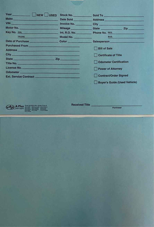 Vehicle/Automotive Deal Jackets - Blue - (P5) (100)