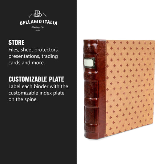 Bellagio-Italia 3-Ring 1" D Ring Binder, Tuscanny Faux Leather - for Documents, File Storage, and Trading Cards, Stores up to 250 Pages,Crimson