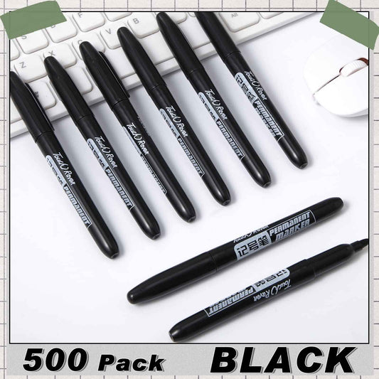 Thenshop 500 Pack Permanent Markers Bulk Black Permanent Marker Set Fine Point Pens Waterproof Work on Wood, Metal, Plastic, Stone, Glass
