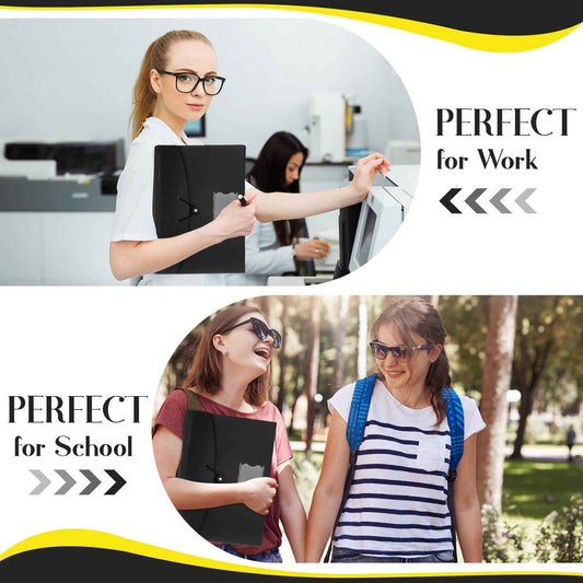 Glenmal 10 Pcs 7 Pocket File Folders File Organizer Expanding Folder with Labels Plastic Expandable Folder Pocket Folder A4 Letter Size Paper Organizer Folder for Office(Black)